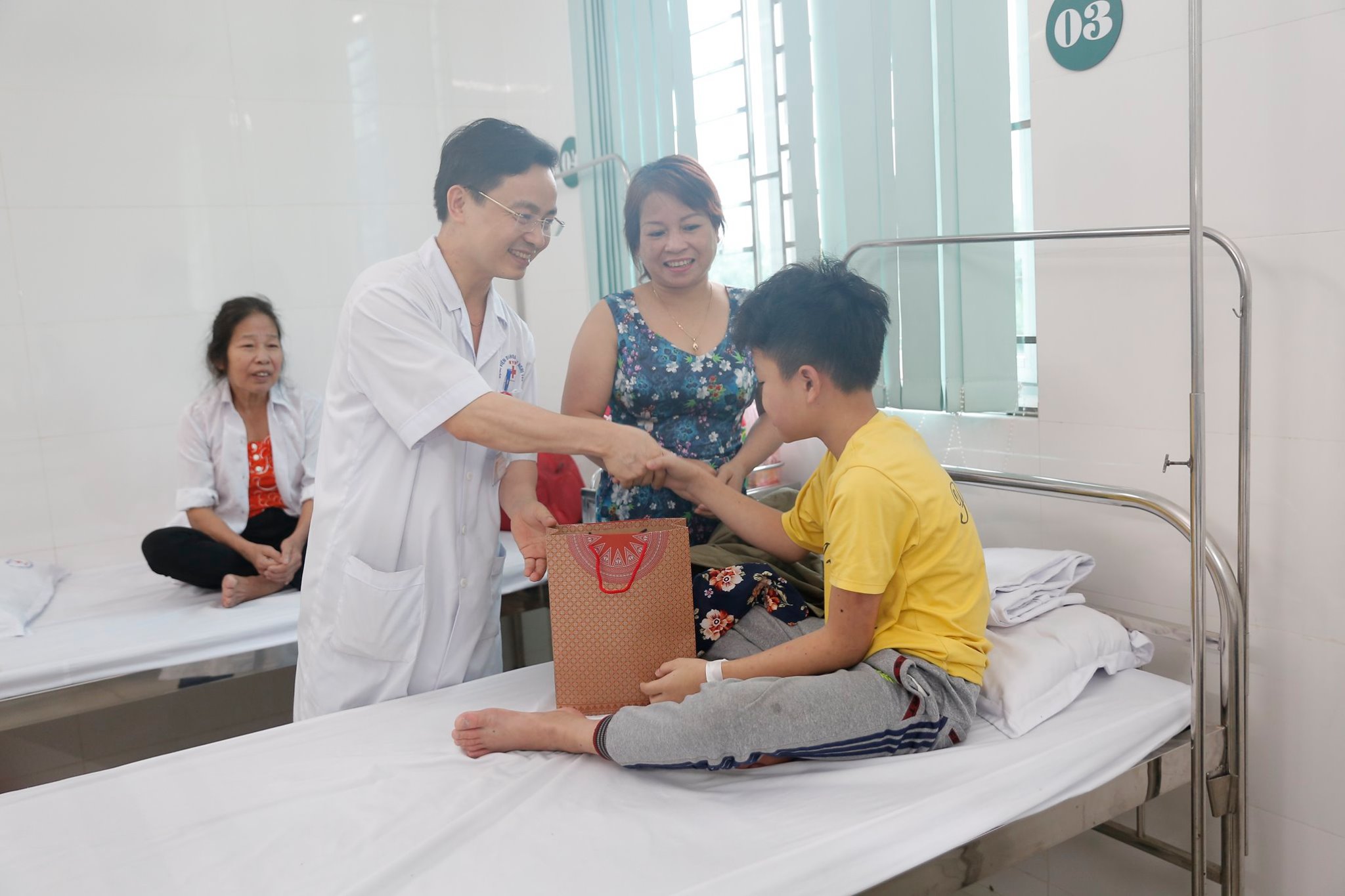 Tại Bệnh viện, Chủ tịch HĐQT- Bác sĩ Nguyễn Công Hân cùng BLĐ Bệnh viện Đa khoa Hữu nghị 103 Yên Bái đã đến thăm từng cháu nhỏ, tặng quà và động viên, chia sẻ với các gia đình, mong muốn các gia đình khắc phục khó khăn chăm sóc các cháu nhanh chóng hồi phục sức khỏe.