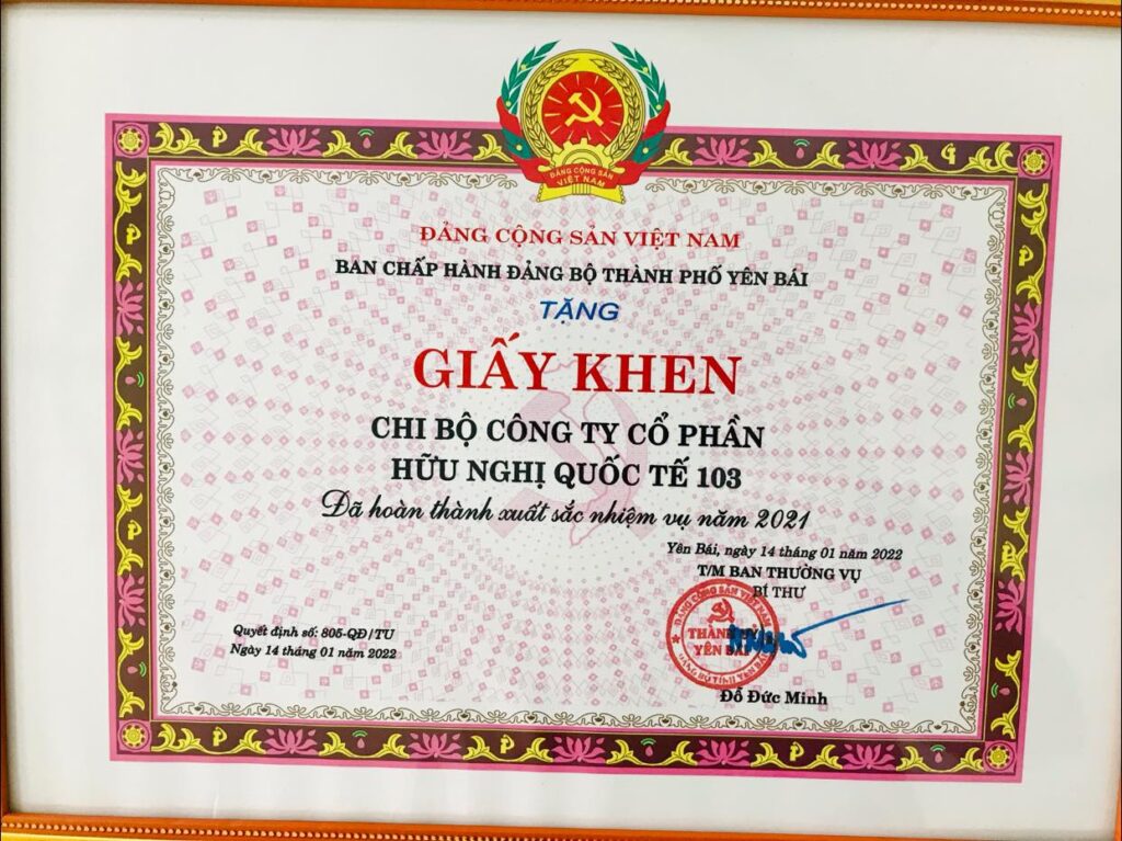 Đầu năm 2022, Công đoàn cơ sở và Chi bộ Công ty cổ phần Hữu Nghị Quốc tế đã vinh dự được nhận Bằng khen của Ban chấp hành liên đoàn lao động tỉnh Yên Bái và Ban chấp hành Đảng bộ thành phố Yên Bái.